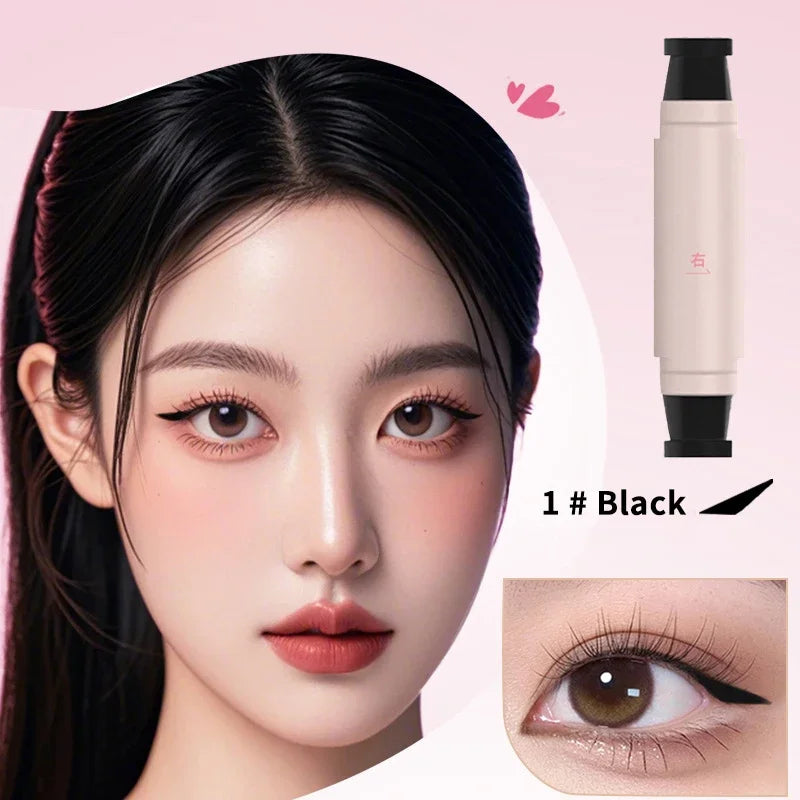 The double-ended pen features a uniquely shaped stamp that ensures perfect symmetry with each application. Simply press the stamp to your eyelid for flawlessly matching wings, eliminating the need for unsteady hands or guesswork.